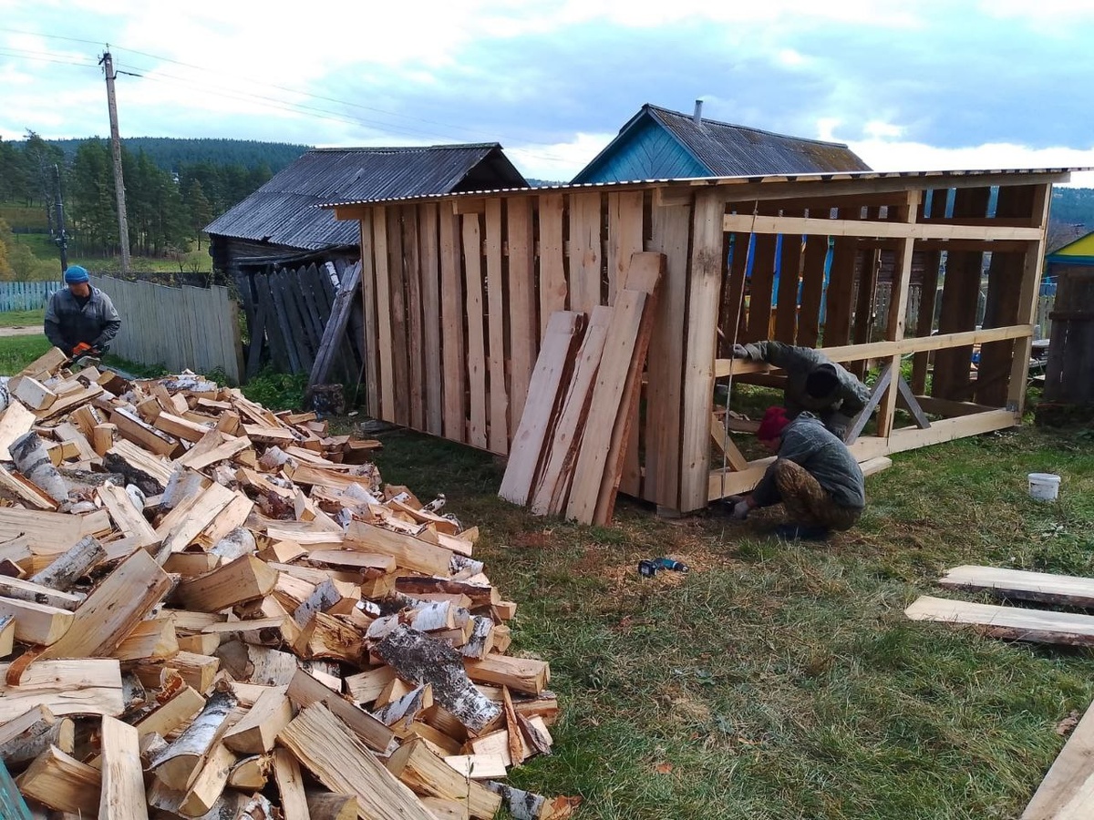 Ишейҙән һалдат әсәһе Фәриҙә Ильяс ҡыҙына ауылдың тырыш егеттәре утынлыҡ эшләүҙә ярҙамға килделәр.Бына улар: Илдус Абдрахманов,Винер