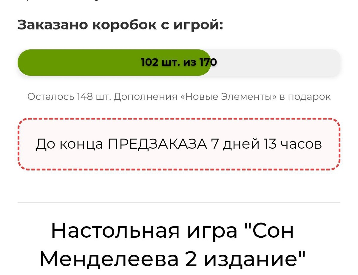 Итог дня; 102 штуки предзаказов из необходимых 170. Осталась неделя.