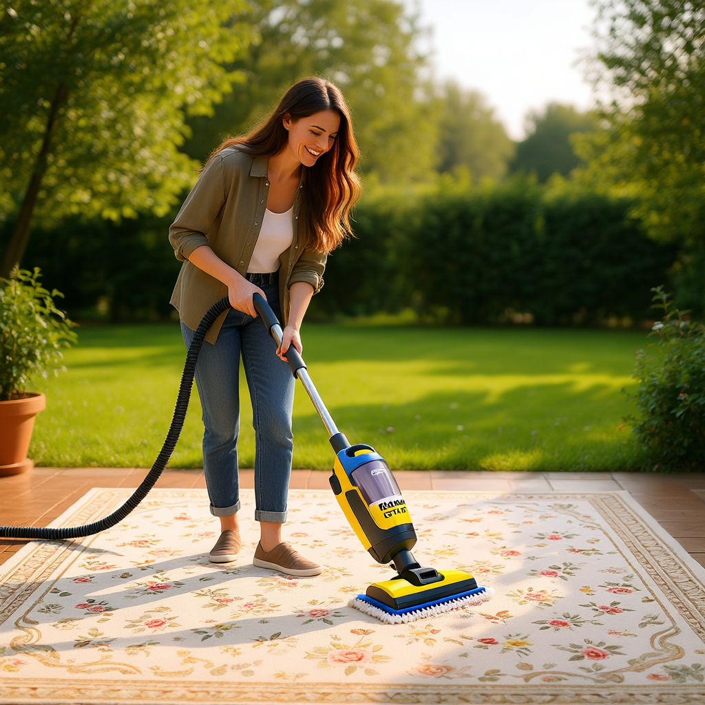 Чистка ковра в садике при помощи мойки высокого давления Karcher K7