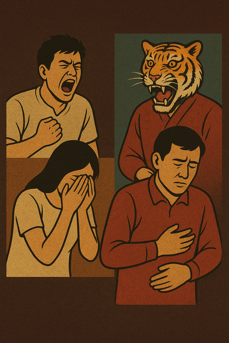 • Симптомы: хроническая усталость, бессонница, боли в животе, ощущение жара в груди. Считается, что причина — «подавленный гнев», который нельзя выражать открыто из-за культурных норм.