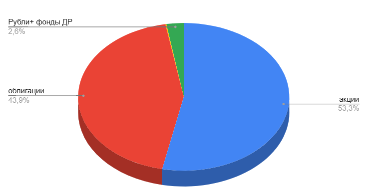- 12 облигаций Селектел (заявка на размещении). 1. Сейчас доля акций составляет 53,3%, облигаций 43,9%, золота 0,1%, фонды денежного рынка + ₽ 2,6% (целевые доли 55/43/2). Доходность XIRR, которая учитывает пополнения в разные периоды времени начиная с 2023 года и налоговые вычеты на пополнение ИИС, снизилась до 19,1%. 2. Индекс Мосбиржи продолжил корректироваться, поэтому все покупки совершил чуть раньше запланированного. Геополитическая ситуация не налаживается, новые санкции, на подходе повышение налогов, да плюс финансовые показатели многих компаний не дают повода для оптимизма. Но именно в такие моменты нужно покупать. 3. Продолжил покупать уже забытую позицию фонда на золото
