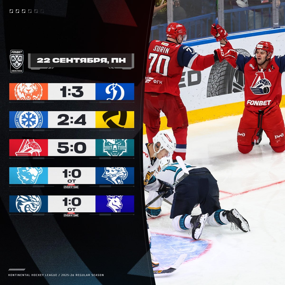 «Драконы» остановили «Торпедо», Минск одержал первую домашнюю победу, Радулов забил три ХК «Сочи» — насыщенное начало недели! 📹 Обзоры на YouTube 📺 Обзоры на RuTube 💬 Обзоры в ВК #ФонбетКХЛ