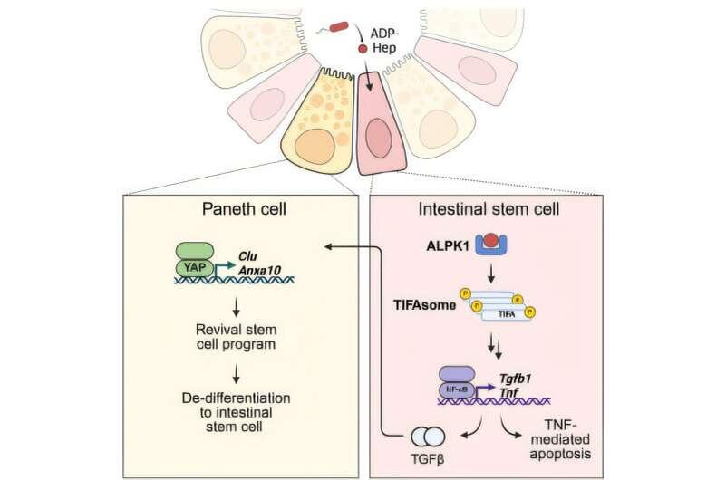 Исследователи из Торонтского университета (University of Toronto) обнаружили неожиданный механизм: бактерии способны стимулировать регенерацию стволовых клеток, помогая восстановить кишечный барьер после повреждений. Работа проведена в лаборатории Стивена Жирардина (Stephen Girardin) совместно с аспирантом Шоном Гоялом (Shawn Goyal) и опубликована в журнале «Cell Stem Cell». Кишечные стволовые клетки отвечают за обновление слизистой оболочки каждые несколько дней. В норме они работают в стерильной зоне, не контактируя с микробами. Но при повреждениях микробные продукты могут достигать этих клеток, подавая сигнал об опасности. Учёные показали: особый бактериальный сахар ADP-гептоза запускает цепочку сигналов, из-за которых часть стволовых клеток «самоуничтожается». На первый взгляд это кажется вредным, но на деле механизм работает как защита: вместо потенциально повреждённых клеток появляются новые, здоровые. Когда мини-органоиды кишечника в лаборатории подвергались действию ADP-гептозы