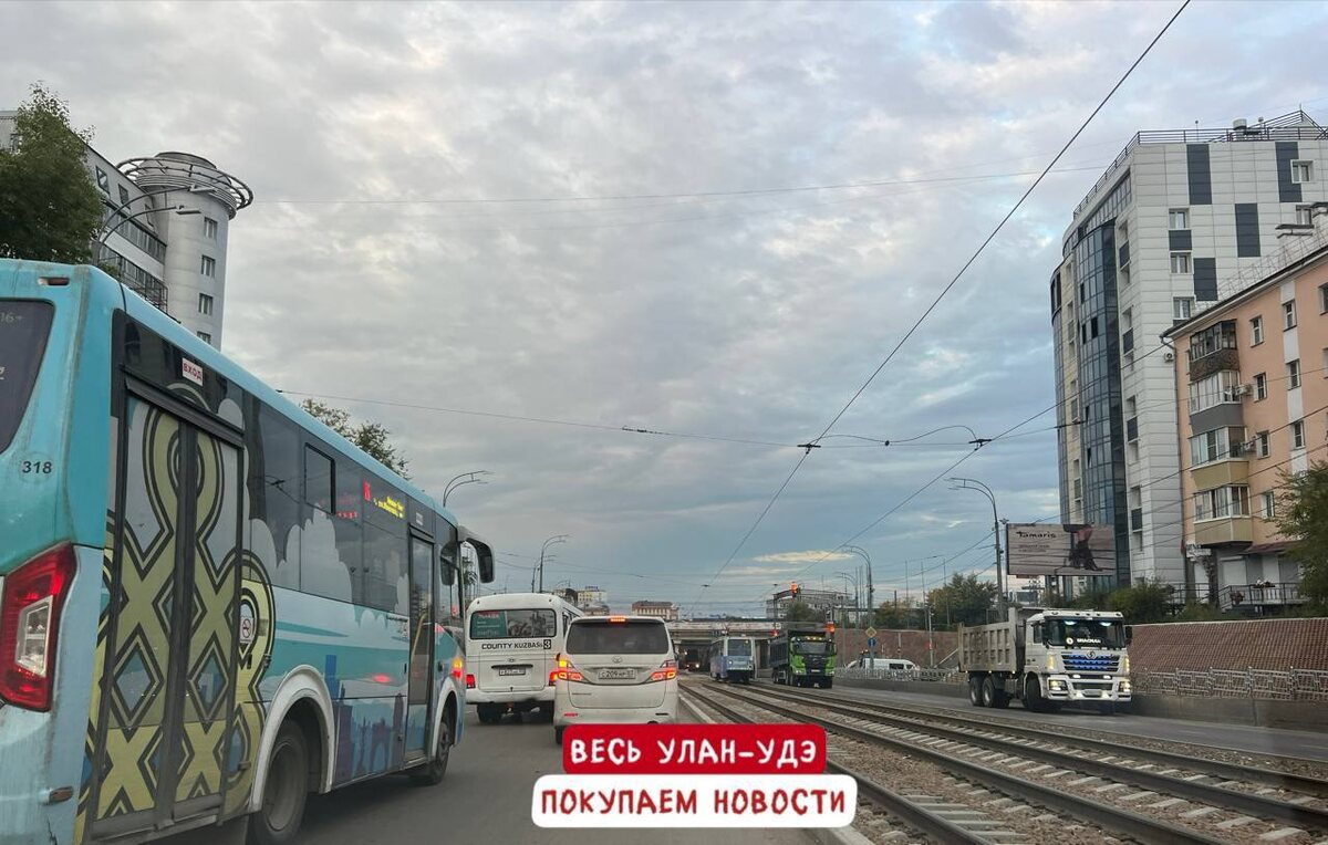Пробка на Элеваторе. Перекрыта одна полоса Фото: Весь Улан-Удэ 🔴 Подписывайся на нас в МАХ
