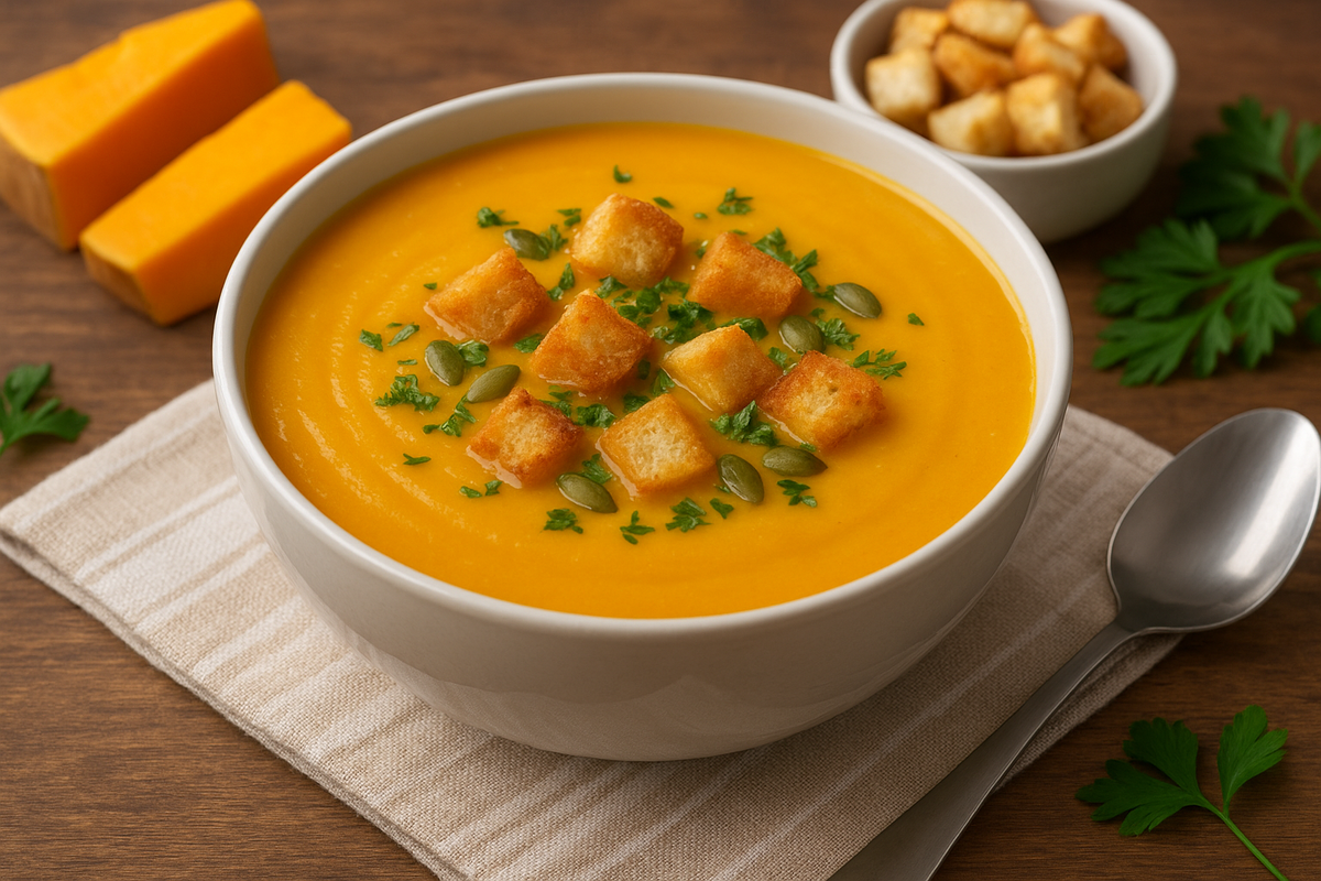 Тыквенный крем-суп — это настоящее воплощение осени. Яркий цвет, нежная текстура и лёгкая сладость делают его любимым блюдом не только у взрослых, но и у детей. А готовится он просто и быстро: всего полчаса — и у вас на столе тарелка тепла и уюта. 🛒 Ингредиенты 👩🍳 Пошаговый рецепт 1. Подготовка овощей. Тыкву, морковь и картофель очистите и нарежьте кубиками. Лук нарежьте мелко. 2. Обжарка. В кастрюле с толстым дном разогрейте масло и слегка обжарьте лук и морковь до мягкости. Это придаст супу насыщенный вкус. 3. Варка. Добавьте картофель и тыкву, залейте бульоном. Варите на среднем огне 20 минут, пока овощи не станут мягкими. 4. Пюрирование. Снимите суп с огня и измельчите погружным блендером до кремовой консистенции. 5. Финальный штрих. Добавьте сливки, соль и перец. Перемешайте и прогрейте ещё пару минут, не доводя до кипения. 6. Подача. Разлейте суп по тарелкам, украсьте сухариками, семечками и зеленью. 🔥 Лайфхаки для идеального крем-супа #тыквенныйсуп #рецепт #кремс