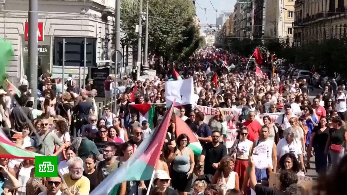 [ Смотреть видео на сайте НТВ ] Участники манифестаций требуют прекратить продажу оружия Израилю и ввести санкции. Они также обвиняют итальянское правительство в геноциде в Газе. Протестные шествия прошли более чем в 80 городах, включая Рим и Милан. Там были перекрыты дороги, не работал общественный транспорт и аэропорты. В итальянской столице митингующие фактически заблокировали центральный вокзал. В Милане все переросло в жесткие столкновения с полицией. В ответ правоохранители применили дымовые шашки и водометы. В Болонье сотни людей перекрыли центр города. Забастовка в Италии началась после того, как премьер Джорджа Мелони отказалась признавать Палестину. Ранее о признании государства объявили Великобритания, Канада, Австралия, Португалия и Франция. [ Смотреть видео на сайте НТВ ]