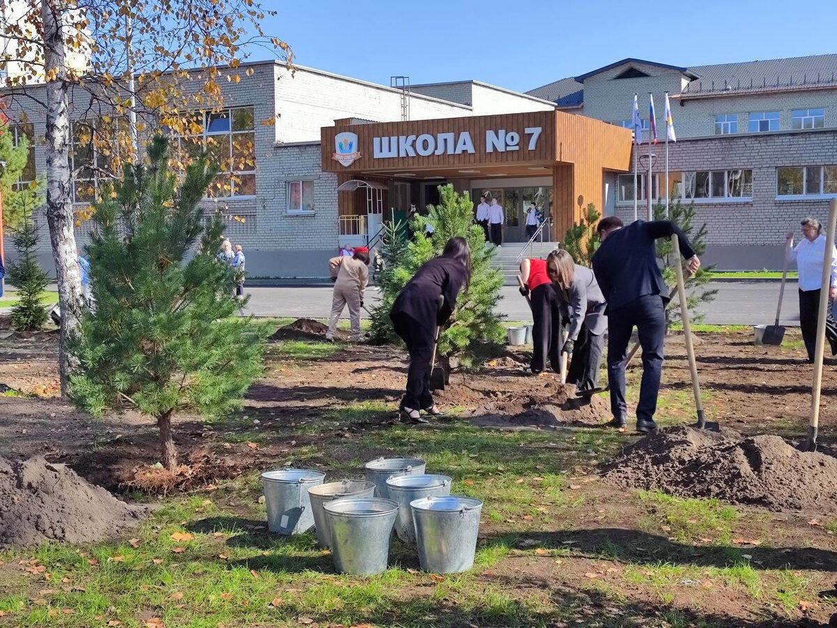 Безопасность посетителей обеспечена системой видеонаблюдения по периметру территории. После торжественной церемонии школьники и гости высадили у школы 49 сосен и елей.
