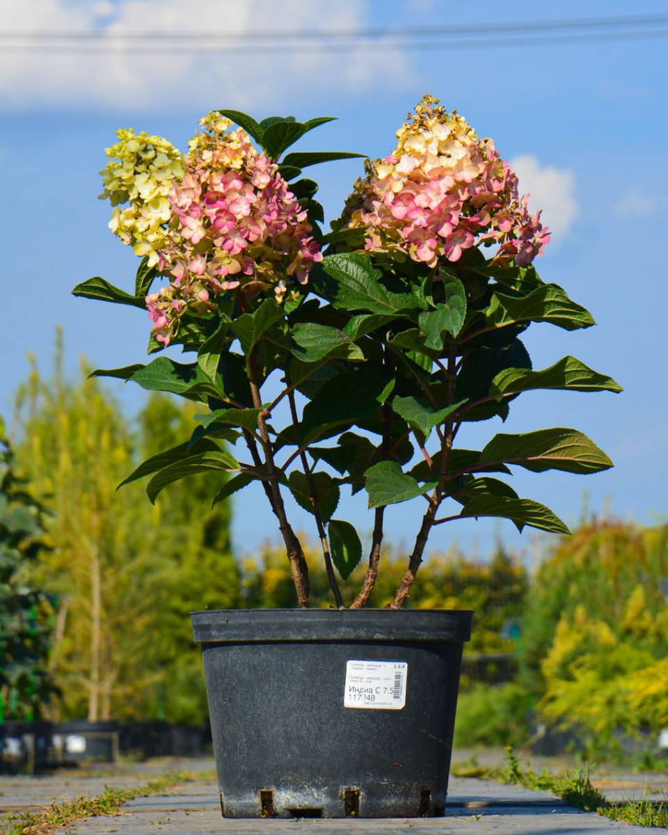 НОВИНКА в «ЁЛЫ-ПАЛЫ»: Гортензия, которая покорит ваше сердце! ✨ Гортензия метельчатая `Индиан Саммер` (Hydrangea paniculata `Living Indian Summer`) Второе название - Red Velvet. Тот самый случай, когда модный тренд совпадает с неприхотливостью! Этот роскошный сорт, представленный в 2022 году, уже завоевал любовь садоводов. Почему она должна быть в вашем саду: * 💐 Феерия цвета: Крупные конусовидные соцветия меняют оттенки на протяжении всего сезона — от нежного белого через насыщенно-розовый до глубокого рубинового. Цветение продолжительное, до 100 дней, с июля по октябрь. * 💪 Идеальная форма: Пышный веерообразный куст высотой до 1,2 м с мощными побегами. Он отлично держит форму, не разваливается под тяжестью цветов и не требует подвязки. Листва очень плотная, насыщенно зелёного цвета. * 🌞 Простота в уходе: Посадите ее на солнце или в полутени, обеспечите регулярный полив — и она будет радовать вас много лет. Сорт обладает выдающейся зимостойкостью. Идеи для вдохновения от
