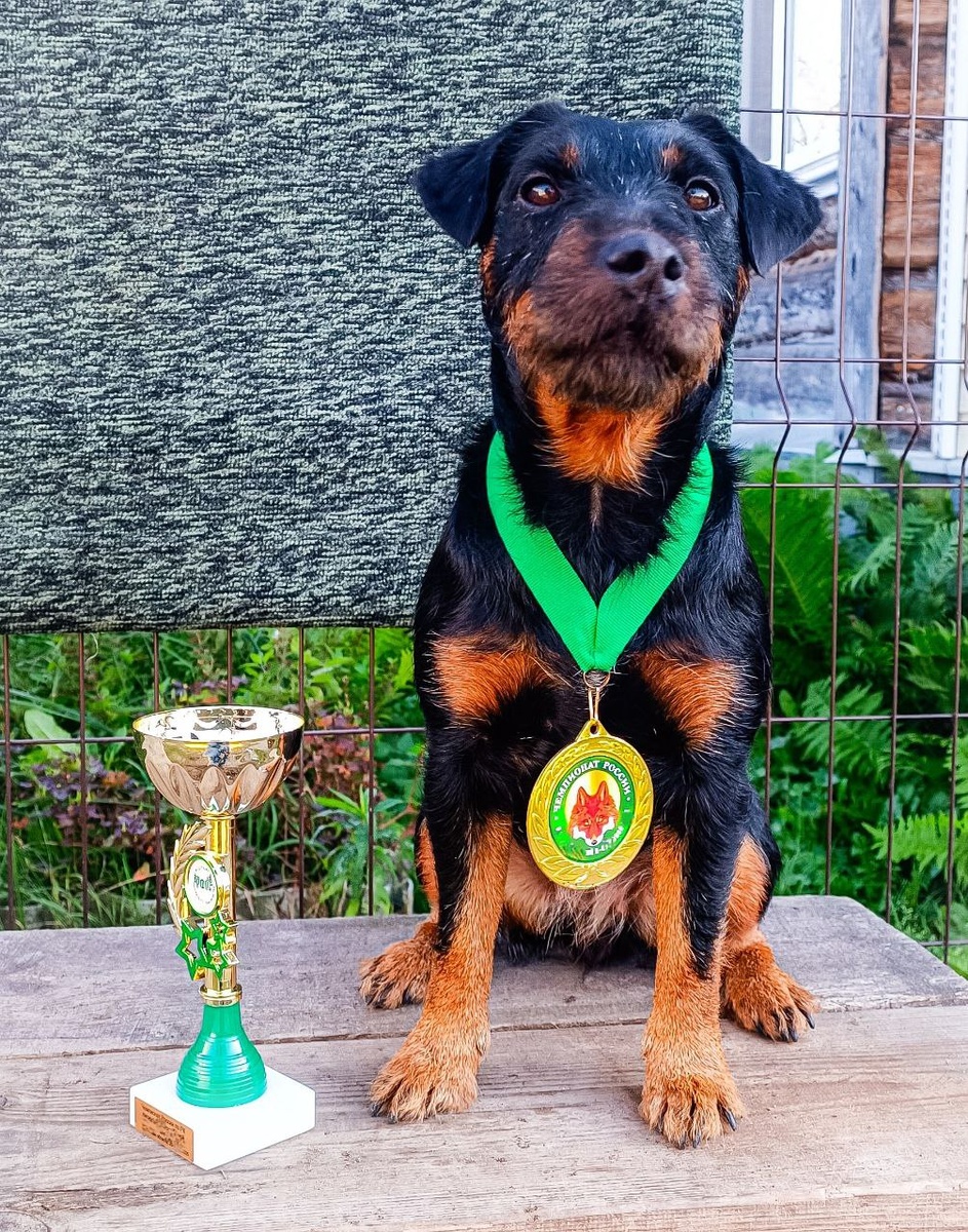 Побывали с Фрау Мюллер на Чемпионате России РКФ. Впервые на мероприятии такого ранга. Привезли оттуда ДIII и ДI, диплом, кубок и красивую медаль чуть поменьше Фро размером. Есть над чем работать, безусловно! Но я малышкой довольна, идём в правильном направлении. #большеаццкихгончих #аццкиегончие #ягдтерьер #немецкийягдтерьер А в выходные нас ждут соревнования на Кубок Киборга у Amstaff_Jackson ! Приходите за нас болеть!