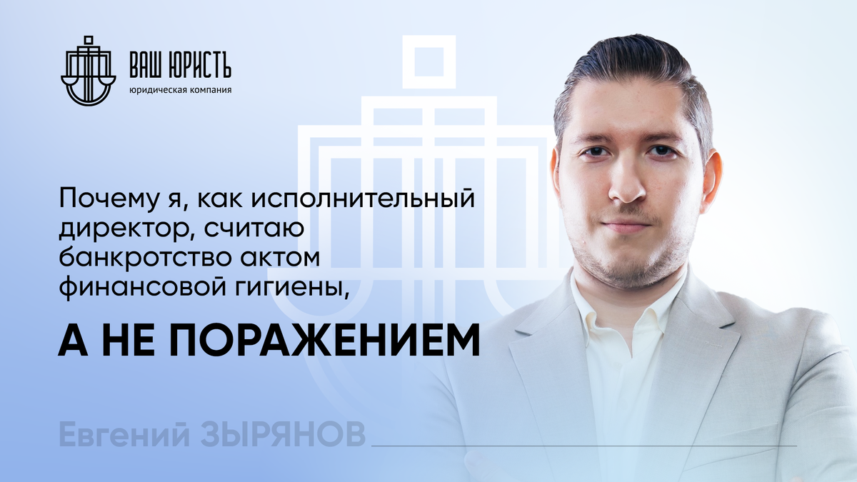 Личное мнение Евгения Зырянова из компании «Ваш Юристъ». Спойлер: это не про бегство от долгов. Это про возврат к нормальной жизни. Знакомо ощущение? Тонете в долгах, каждый звонок с незнакомого номера заставляет вздрагивать, а мысль о будущем вызывает только панику. Общество нашептывает: «Взял кредит — будь добр, отдай. Банкротство — это для неудачников». Я, Евгений Зырянов, исполнительный директор юридической компании «Ваш Юристъ», заявляю: это опасное заблуждение. Я руковожу командой, которая ежедневно выводит людей из финансового кризиса, и я вижу результат. Банкротство — это не акт капитуляции. Это акт финансовой гигиены. Позвольте провести параллель. Если у вас болит зуб, вы идете к врачу. Вы же не ходите годами, терпите боль, боитесь и прячететесь от стоматолога? Нет. Вы решаете проблему. Так почему с долгами история другая? Люди годами живут с финансовой «болью», которая разрушает их здоровье, семьи и веру в себя. Они продолжают «лечиться» микрозаймами, чтобы залатать дыры в кр