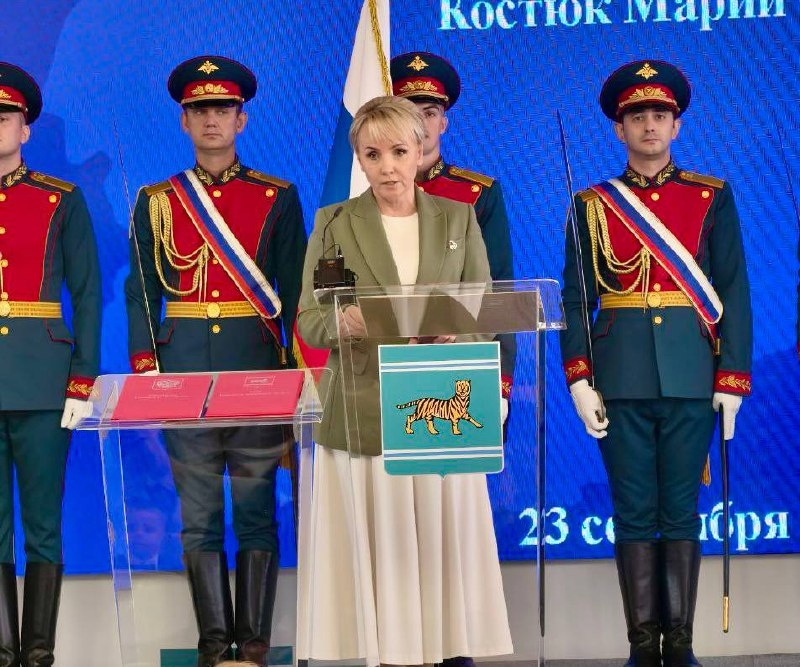 Мария Костюк вступила в должность губернатора ЕАО Церемония торжественного вступления в должность состоялась в правительстве области. Руководитель облизбиркома Ольга Бабий зачитала итоговый протокол выборов губернатора и вручила удостоверение губернатора Марии Костюк. Новый глава автономии принесла присягу в присутствии представителей муниципалитетов, судейского сообщества, прокуратуры, депутатского корпуса, федеральных и областных органов государственной власти и общественных организаций. Мария Костюк поблагодарила всех жителей области за активное участие в выборах и подтвердила приоритетную задачу всей системы власти автономии – повышение качества жизни людей. По итогам выборов в сентябре 2025 года Мария Костюк набрала 83,02% голосов избирателей. В ее поддержку высказались более 72,1 тысячи человек из 85,3 тысячи принявших участие в голосовании. Подпишись @РИА Биробиджан | MAX