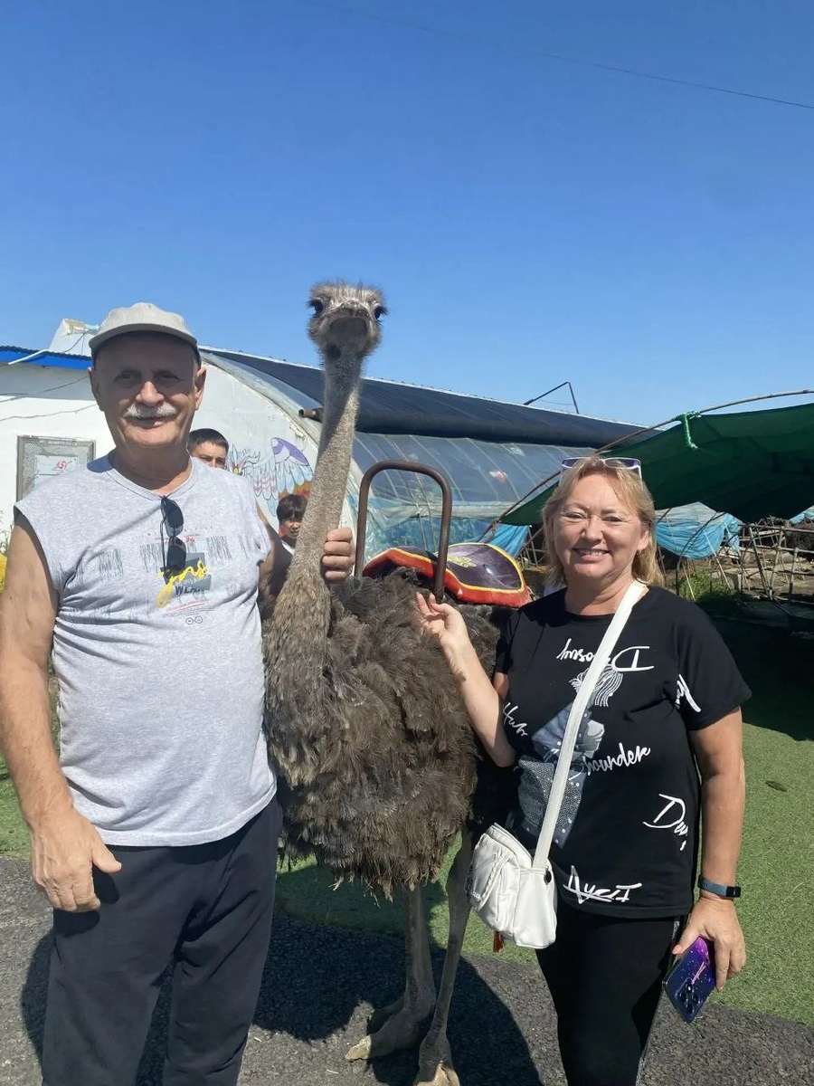 На страусиной ферме в Китае #паркСтраус Во время пребывания в Хуньчуне мы замечательно провели время в парке "Страус", который находится в 15 минутах езды от города. Познакомились и пообщались со страусами на страусиной ферме, где содержится 20 птиц. Покормили птичек, они оказались очень прожорливыми😳 Сделали фото на память со страусами и страусиным яйцом😜👌ох и тяжеленькое оно, однако😮 Страус по имени Леша прокатил нас с ветерком👍👍👍 Полюбовались струсиными перьями и отведали пельмени и шашлык из страусятины. 🔥👍🔥Мясо нежирное, диетическое, пельмени отменные. А ещё поели шашлык из баранины, попробовали местную самогонку и винцо, даже купили себе местного вина 🍷😜 И это ещё не всё-продолжение следует👌 #хуньчунь2025 #открываемкитай #гуляемсОлей #страусы #страусинаяферма