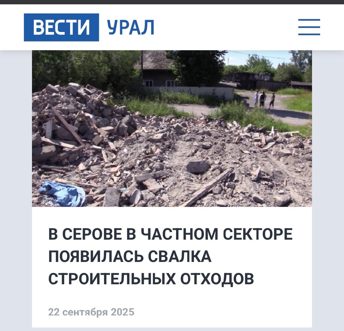 В Серове в частном секторе появилась ссылка строительных отходов
