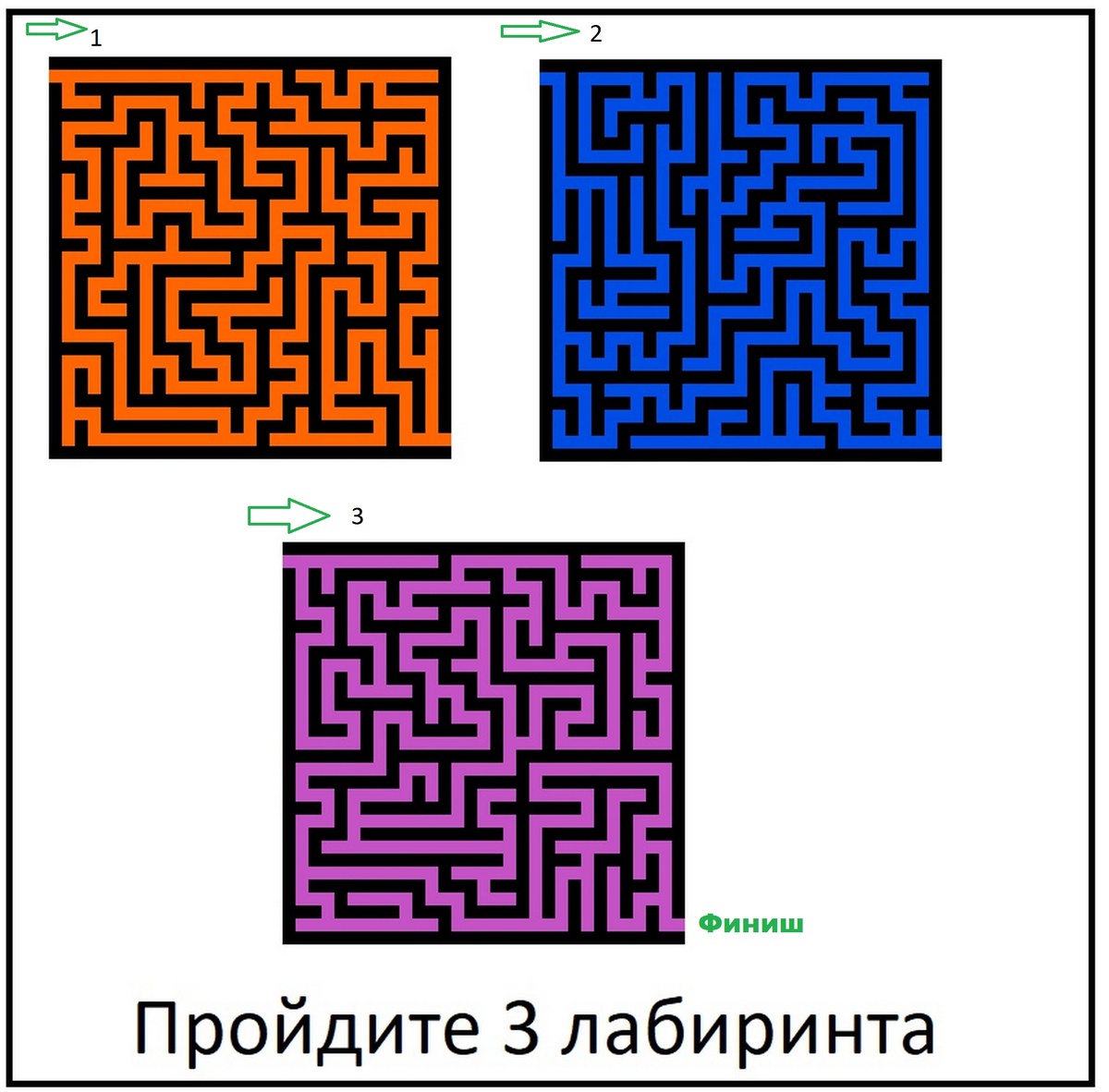 Новое задание из раздела лабиринты. Перед вами три простых лабиринта. Вам необходимо за минимальное время пройти их.
