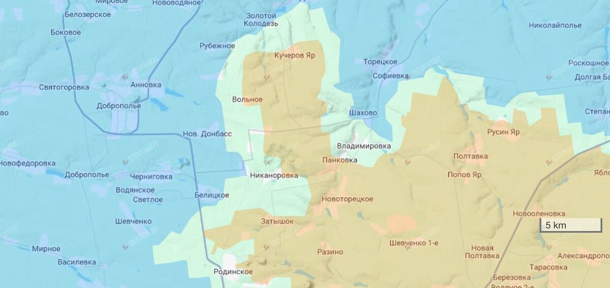 🔴Крайне напряжëнной остаётся обстановка на северном фланге Красноармейского направления ВСУ концентрирует усилия на развитии наступления с целью отсечения Добропольского выступа и выхода к ключевым опорным пунктам армии России. В районе Владимировки ВСУ развили продвижение до 900 м в сторону Новоторецкого, пытаясь закрепиться на новых позициях и расширить плацдарм для дальнейших атак. На участке Родинское – Никаноровка бандеровцам удалось увеличить зону контроля до 3,5 км в направлении Разино, что усиливает угрозу для устойчивости русских флангов. В ответ российские войска ведут интенсивные бои на подступах к Артëмовке (Софиевка) и Розы Люксембург (Новое Шахово). Подпишись на Телеграм Александр Семченко