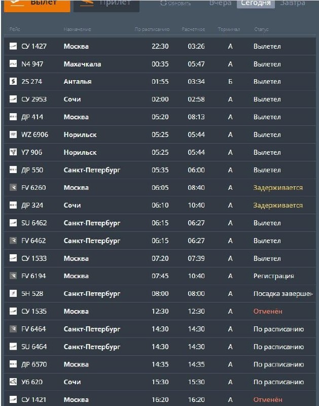✈️ В челябинском аэропорту задержаны больше 10 московских рейсов из-за атаки беспилотников, а также рейсы до Сочи Судя по онлайн-табло, три самолета из Москвы этой ночью прибыли с задержками до пяти часов, два рейса ожидаются ближе к 10 часам утра, еще два отменены. Что касается вылетов из столицы, то с задержкой отправились три самолета, еще два ждут и два отменены. Из Сочи один самолет прилетел на час позже, второй – почти вовремя. Обратно первый уже вылетел, второй же задержан на четыре часа. Также с опозданием на пять часов прилетел и отправился обратно рейс из Махачкалы.