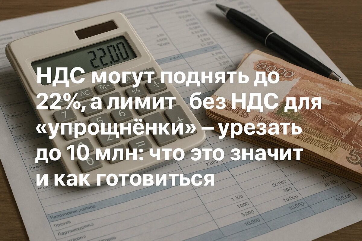 Главное коротко: в правительстве обсуждают повышение НДС с 20% до 22%. Параллельно в профильных медиа и экспертной повестке всплыла идея резко снизить лимит выручки, при котором упрощёнцы освобождаются от НДС, — с 60 млн ₽ до 10 млн ₽ в год. Это пока не закон, но бизнесу важно понимать сценарии и заранее посчитать эффекты. Не забудьте нажать «лайк» и подписаться на Бизнес без паники с Ириной Маминой в Дзене, чтобы следить за другими актуальными новостями. С 1 января 2025 года компании и ИП на УСН формально стали плательщиками НДС, но получают автоматическое освобождение при доходе до 60 млн ₽ за год (ст. 145 НК РФ). Отказаться от этого освобождения нельзя. Важно: встречались и версии про «30 млн ₽ с 2026 года», что только подчёркивает расхождение оценок в инфополе. Ориентируемся на первоисточники и ждём официальных документов. Предположим, ваша базовая «чистая» цена — 1 000 ₽. Это точно примут? Нет. Пока это уровень обсуждений/инсайдов. Ждём текстов законопроектов.