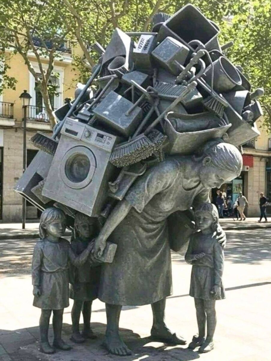 Скульптура «el Esfuerzo» («Усилие») или «La Carga» «Бремя»), созданная художником Жауме Пленсой. Она расположена в Барселоне (Испания) на улице Каррер-де-ла-Принцеса. Эта скульптура - напоминание о том, как много делают женщины каждый день. Их труд часто незаметен, но невероятно важен! Как вам такое искусство? 🌷 🤩🤩🤩🤩🤩🤩🤩🤩