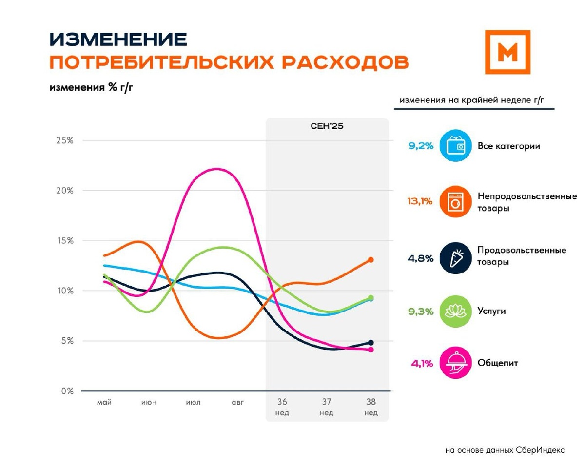 🗓 Потребительские расходы: 38 неделя