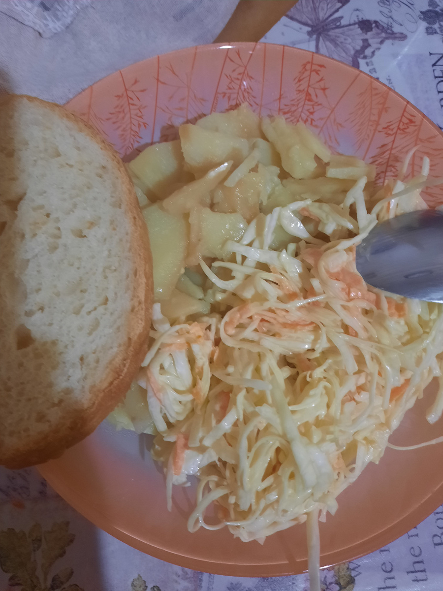 Собственно салатик и картошечка с ночного дожора👇 хлебушек тоже домашний.