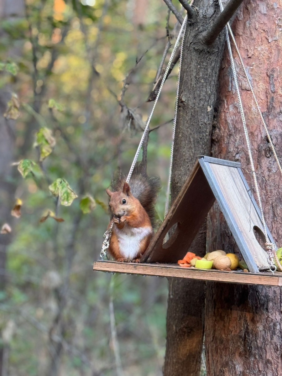 Мы вроде бы уже привыкли к белочкам на лыжной базе Ишимбая. И всё же, невозможно сдержать улыбку, видя этих зверьков, которые мечутся медно-рыжими огоньками среди деревьев. Белок здесь знают и любят: приносят им орехи и прочие угощения, которыми они беззастенчиво лакомятся. А всё-таки, каждая такая встреча с лесными обитателями – настоящее чудо, подтверждающая, насколько мы близки к природе и насколько живая природа близка и естественна для нас, людей. Давайте же вместе любить и хранить её ради себя и ради наших потомков… Фото и видео: архив семьи Кашкиных