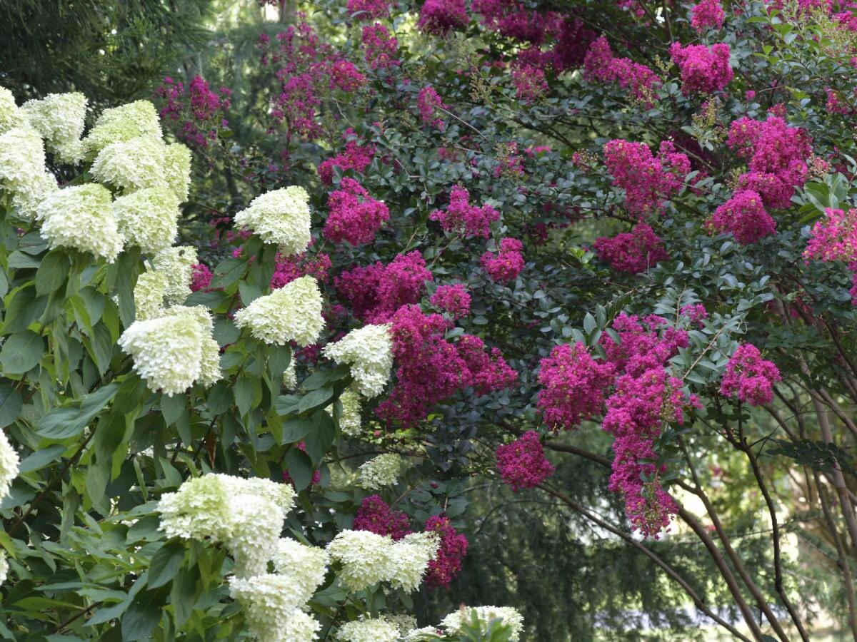 Гортензии с их крупными соцветиями любят дачники по всей стране. Они нетребовательны и отлично подходят для бордюров и центральных клумб. Сортов множество — от белоснежных до ярко-фиолетовых, поэтому подобрать вариант для любого участка не составит труда. В российских садах гортензии особенно ценят за неприхотливость и долгий период цветения.
