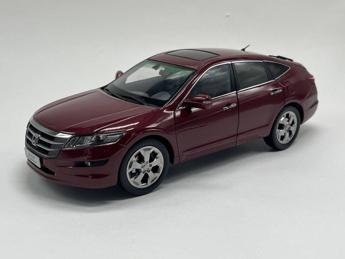 Honda Crosstour 1 поколение Дорестайлинг первого поколения, масштаб 1:18. Для тех, кто следит за линейками Honda, появление Crosstour было переломным моментом: этот автомобиль появился на стыке классов, привнеся в сегмент liftback/SUV новую философию дизайна. На реальном рынке Crosstour выделился не совсем типичным кузовом - что-то среднее между большим хэтчбеком и кроссовером, с ориентиром на универсальность. Honda Crosstour не похож на классические седаны или стандартные кроссоверы: длинная колесная база, мощная задняя часть и высокая посадка явно идут от Accord, но линия хэтчбека и лаконичные, стремительные очертания задают Crosstour индивидуальный стиль. Под капотом в реальности чаще всего - надежный V6, полный привод и неплохая динамика для класса. Появление такой модели ознаменовало для рынка переход к экспериментам с концепциями больших универсалов для семьи, работы и дальних поездок. Модель выполнена в насыщенном бордовом цвете. Визуально выглядит ровно, ЛКП аккуратное, без