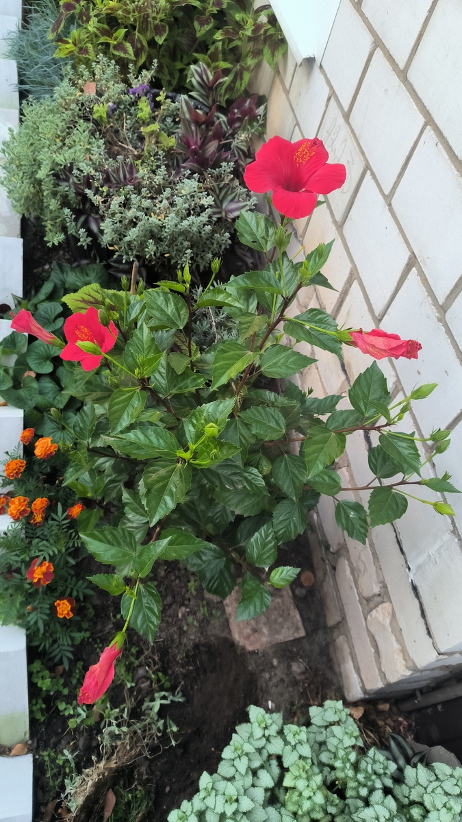Первый год я решила высади ть Гибискус в открытый грунт в начале лета.