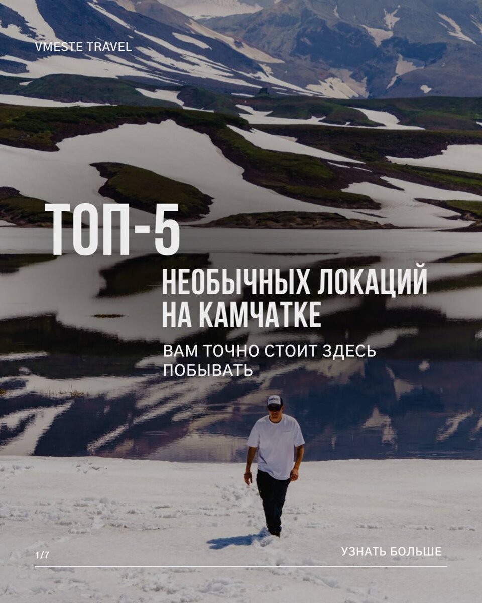 У вас бывало, что путешествие разделило жизнь на «до» и «после»? Камчатка умеет удивлять даже тех, кто, казалось бы, видел всё! Мы выбрали 5 необычных локаций, где можно ощутить контраст огня и льда, почувствовать мощную энергетику края Земли и прикоснуться к первозданной природе 🐋 Эти локации не входят в стандартные маршруты, поэтому увидеть их вживую — значит встретиться с настоящей дикой Камчаткой! Наша команда организует экспедиции в эти невероятные места. 💬 Хотите получить программу путешествия? Напишите нам. ✔ Подписаться на канал #vmeste_вдохновение #Камчатка_vmeste