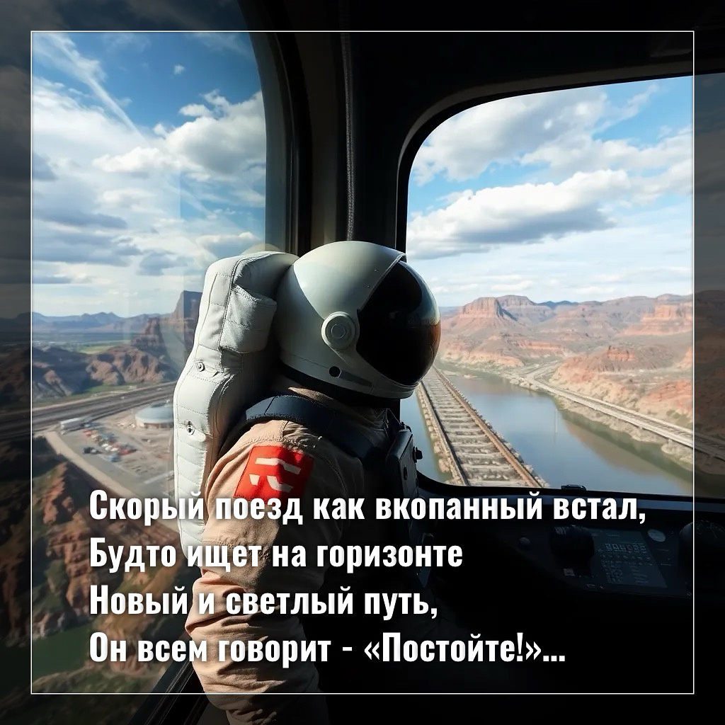 Скорый поезд как вкопанный встал, Будто ищет на горизонте Новый и светлый путь, Он всем говорит - «Постойте!», Куда нам теперь спешить, Когда день сменяет другой? Когда каждый новый - открытие, Но люди несут туда боль, Обиды и воспоминания, Момента боясь настоящего, А в нём как раз целая жизнь, Где может не быть мозга спящего, Усталости нет и болезней, Запах травы густой, Которая на рассвете Покрыта прозрачной росой, Что в прошлом? Его уже нет. Что в будущем - не наступило, Как сладок момент текущий, В нём настоящая сила. И вот, даже поезд встал, Всё время куда-то спешащий, Всё потому что понял, Как важен момент настоящий.