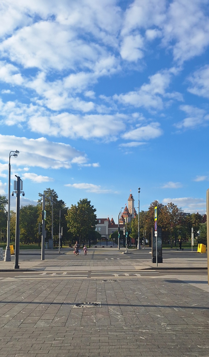 Теплоходные круизы Москва-Константиново начинаются от Южного речного вокзала. Он находится в Нагатинской пойме, напротив «Острова мечты» — крупнейшего в Европе крытого парка развлечений. На фото видны башенки его замка. девочка с мамой идут к вокзалу. Зачем? Туристы?