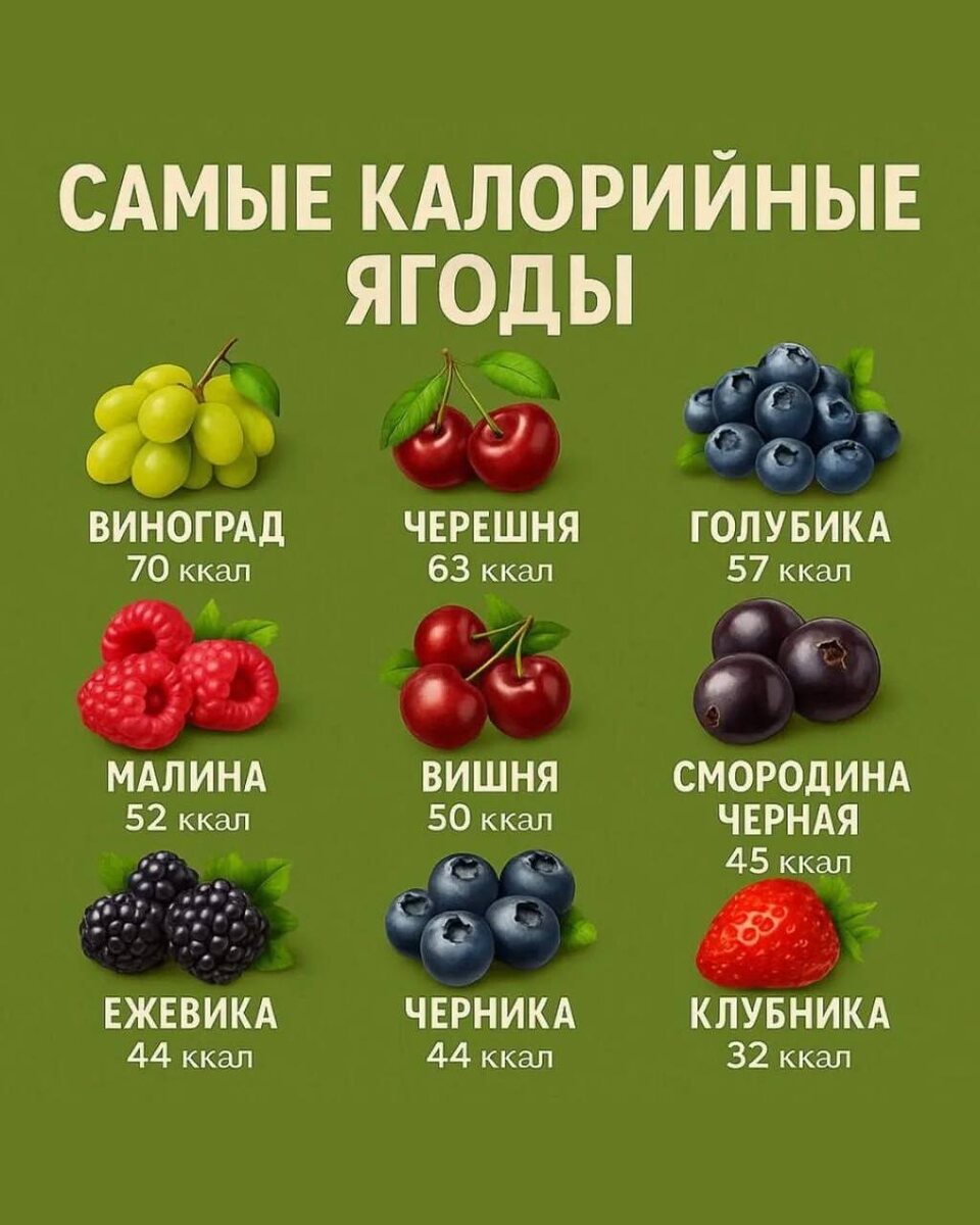 🍒Самые калорийные ягоды для вашего здоровья