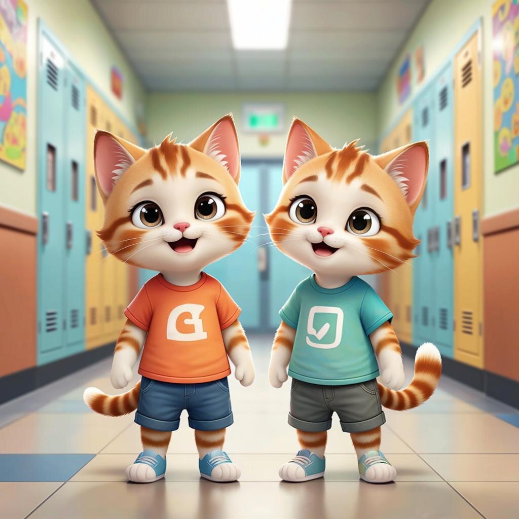 И котята Петя с Федей собираются играть.