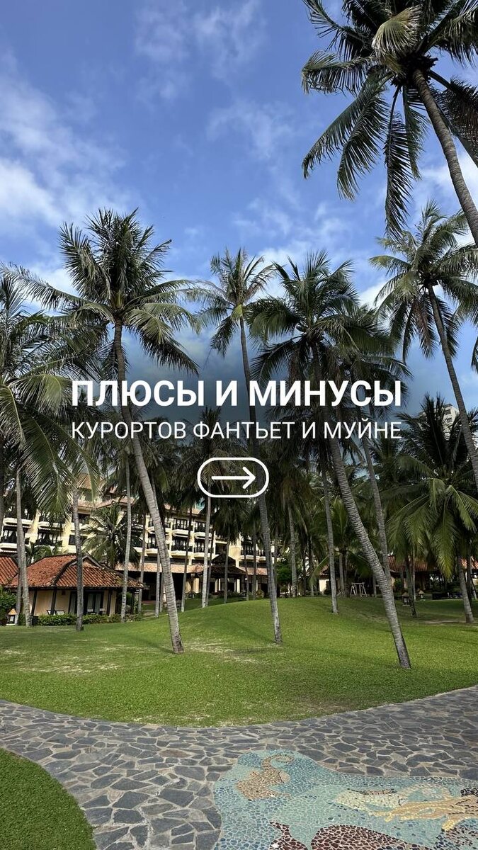 ОДНО ИЗ ПОПУЛЯРНЫХ НАПРАВЛЕНИЙ В АЗИИ… конечно, Вьетнам! ▪️прямые перелеты из РФ ▪️отсутствие визовых формальностей ▪️разнообразие курортов и пляжей Сегодня в обзоре Фантьет и Муйне, честно о плюсах и минусах отдыха здесь👌 Муйне - это небольшая рыбацкая деревня, здесь почти круглый год есть условия для винд- и кайт-серфинга. Фантьет - это крупный город, но отдыхают в основном в пляжной зоне между Фантьетом и Муйне. ✅ Сухой сезон длится с декабря по апрель. В это время температура воздуха +25-35 °C, а вода прогревается до +27 °C ➕ Пляжи песчаные, пляжная полоса тянется на несколько десятков километров и очень приятна для длительных прогулок. ➕ В курортной зоне нет высотных зданий, размещение часто предлагается в бунгало и на виллах, отели утопают в зелени. ➕ Цены ниже, чем на других курортах Вьетнама. ➖ Оба курорта примерно равноудалены от аэропортов Камрани и Хошимина, трансфер занимает около 3,5–4 часа! Это, пожалуй, главный минус. ➖ На море часто большие волны и ветренно.