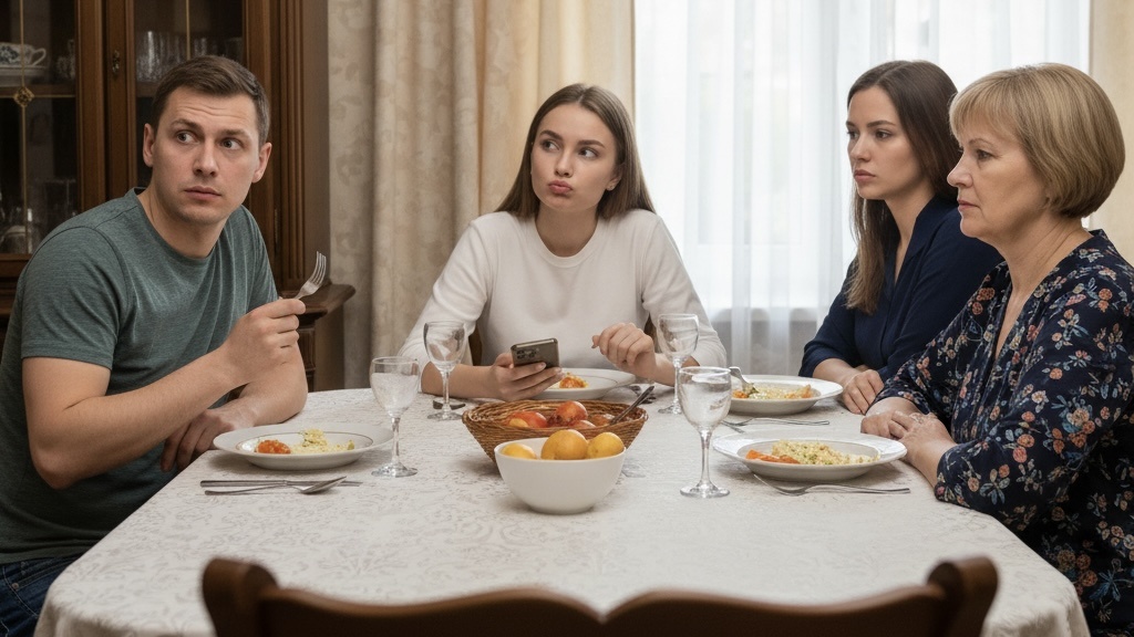 Она демонстративно отодвинула тарелку, всем своим видом показывая смертельную обиду. Свекровь тут же начала ее утешать. Остаток обеда прошел в ледяном молчании.