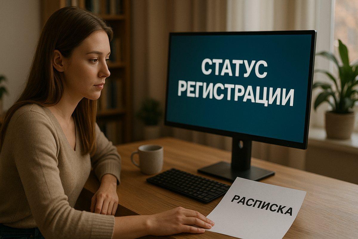 Статус вашей регистрации можно проверить онлайн через официальный сервис «Проверка исполнения запроса (заявления)». Для этого нужен номер из расписки/описи, который нужно вводить точно в том формате, как указан в документе (со всеми разделителями). Если статус ещё не появился — обычно данные обновляются через несколько дней после подачи. Также доступна круглосуточная горячая линия Росреестра. Расписка (опись) выдаётся при приёме документов в МФЦ/Росреестре: на ней указан регистрационный номер, по которому и проверяют статус. Ищите его в верхней части расписки/заявления — вводите строго как в бланке, включая «/» и «–». Пример: «00/001/2014-1111». Если заменить разделители или убрать их, сервис может не найти заявку. По данным Росреестра, онлайн-проверка обычно становится доступна через 3–5 дней после подачи заявления. В ряде случаев информация подтягивается быстрее. Альтернатива: получить консультацию можно по единому справочному телефону Росреестра 8-800-100-34-34 (круглосуточно, бес