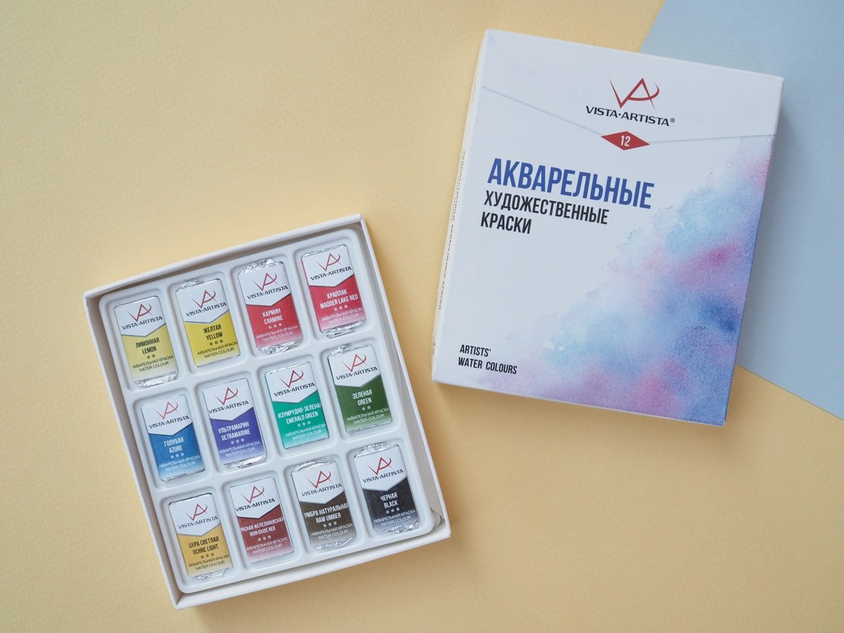 Акварельные. Художественные. Краски. ✨Советуем акварель от Vista-Artista, особенно студентам и ученикам художественной школы, так как акварелька серии «Studio» предназначена именно для обучения: краски легко набираются на кисть, прекрасно размываются и разносятся по бумаге, а тонкий помол пигмента обеспечивает прозрачность и яркость красочного слоя. 🌈 А также во все наборы входят базовые цвета, благодаря чему можно попробовать всевозможные техники и стили. 🎨 У нас доступно в разных комплектациях: 12, 25 и 36 кювет. Бегите изучать 💬