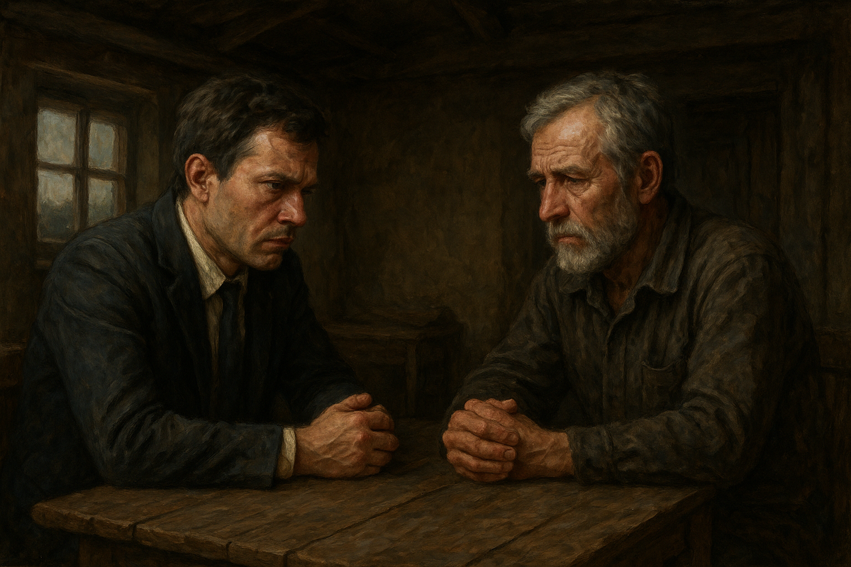 Егор и Алексей были братьями, но всегда словно из разных миров. Егор с детства стремился к большому — к деньгам, к славе, к шумным городам. Алексей же был укоренён в землю: ему нравилось простое ремесло, покой и честный труд. Когда Егор уехал в столицу, Алексей остался в деревне. Сначала они писали друг другу письма: делились новостями, шутили, вспоминали детство. Но вскоре письма стали всё реже. У Егора не хватало времени, а Алексей уставал от того, что брат пишет только о деньгах, сделках и планах, словно жизнь — это лишь гонка. Прошли годы. Егор разбогател, построил карьеру и привык смотреть на мир сверху вниз. Когда умерли родители, он приехал лишь на похороны, и то — в дорогом костюме и с таким видом, будто делает одолжение. Алексей тогда впервые на него рассердился: — Ты забыл, откуда ты. Забыл, кто мы и что нам дорого.