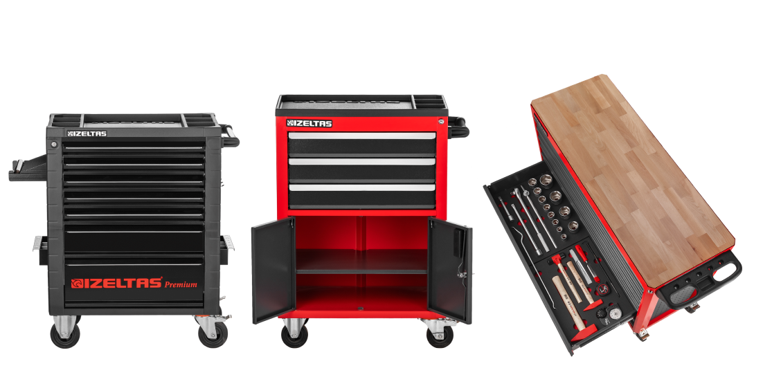 🔧 До конца года действует специальное предложение на инструментальные тележки: более 30 моделей можно приобрести со скидками до 35%. Если основная цель — транспортировка: Почему: Открытые полки обеспечивают мгновенный доступ к инструменту во время перемещений по мастерской. На них удобно размещать габаритное оборудование, канистры с жидкостями или детали, которые нужно быстро взять и положить. Обратите внимание на модели с бортиками на полках — они предотвратят падение инструмента при движении. Наличие крючков для пневмоинструмента или перфорации на стенках для подвеса будет дополнительным преимуществом. Если основная цель — систематическое хранение и защита: Почему: Ящики надёжно защищают содержимое от пыли, влаги, случайных повреждений и пос
