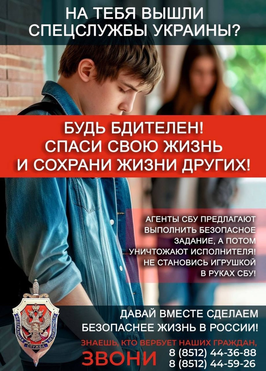 ❗️Ваш ребенок может быть завербован - украинские спецслужбы склоняют молодежь к диверсиям В соцсетях преступники втираются в доверие к молодым людям и под разными предлогами убеждают совершить теракт. Затем исполнителя могут уничтожить, заметая следы. За такие преступления грозит очень серьезная уголовная ответственность! Предупредите близких и будьте бдительны. Сообщите в правоохранительные органы по номерам 44-36-88 и 44-59-26, если знаете, что ваших знакомых пытаются завербовать.