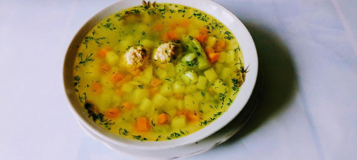 Легкий куриный суп с фрикадельками и овощами