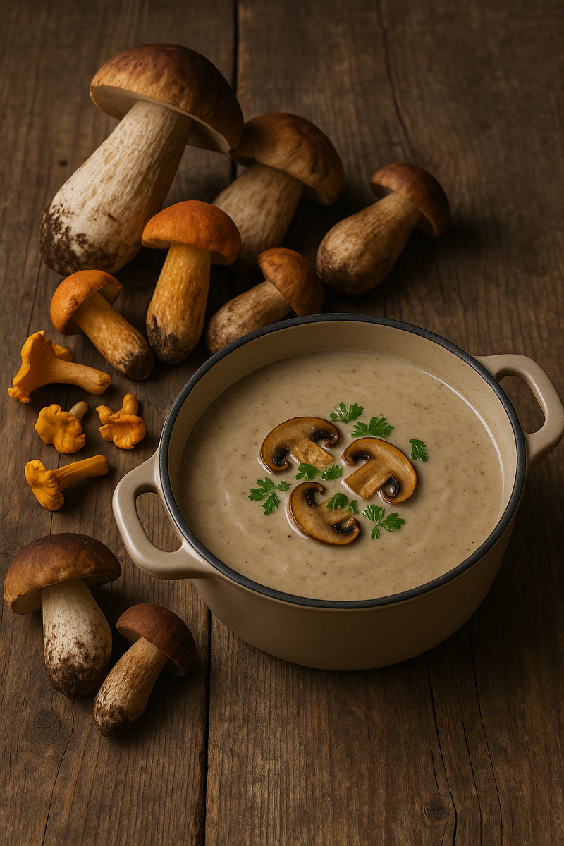 Грибной крем-суп — это одно из тех блюд, которое умеет превращать обычный ужин в настоящий праздник вкуса. Его бархатная текстура и насыщенный аромат всегда ассоциируются с уютом осени. Но главный секрет блюда — это грибы. Ведь от того, какие именно вы выберете, зависит вкус, цвет и аромат супа. Многие используют шампиньоны: они доступны, их легко готовить, и результат всегда предсказуемый. Но если вы хотите почувствовать настоящий лесной дух в тарелке, лучше брать именно дары леса. 1. Белые грибы Белый гриб недаром называют царём. Он даёт насыщенный мясистый вкус, красивый цвет и неповторимый аромат. Крем-суп с белыми грибами получается густым и бархатным, с ярко выраженными грибными нотами. 2. Подосиновики Эти грибы придают супу красивый тёмный оттенок и лёгкую ореховую горчинку. Они отлично раскрываются в кремовой текстуре, добавляя глубину вкуса. 3. Подберёзовики Более нежные, чем подосиновики, но с приятным грибным ароматом. Хорошо сочетаются с белыми грибами, делая суп мягче по