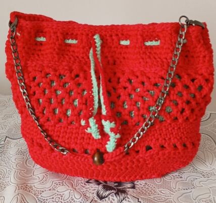 Представляем вам уникальную вязаную сумку "ЯРКАЯ", созданную из полиэфирного шнура насыщенного красного цвета. Основной стиль вязки - СЕТОЧКА, который придает изделию легкость и воздушность, а также позволяет демонстрировать яркий вязаный подклад из шерстяной пряжи зеленого цвета. Верх сумочки украшает вязаный шнурок красно-зелёного цвета. Цена СУМКИ 3500 руб. ( без доставки). Особенности сумки: Материал: Полиэфирный шнур, обеспечивающий прочность и долговечность.