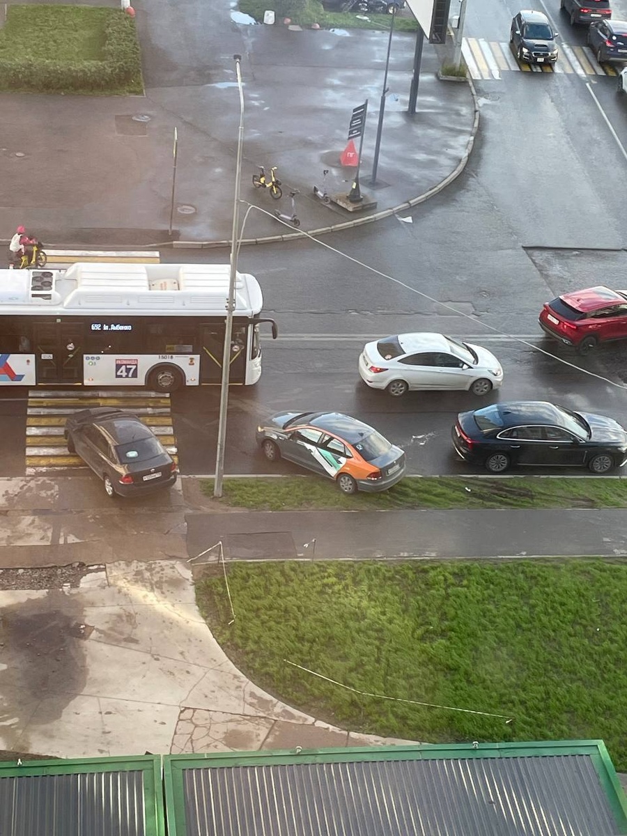 Машины ездят по пешеходному переходу, тротуарам и газонам