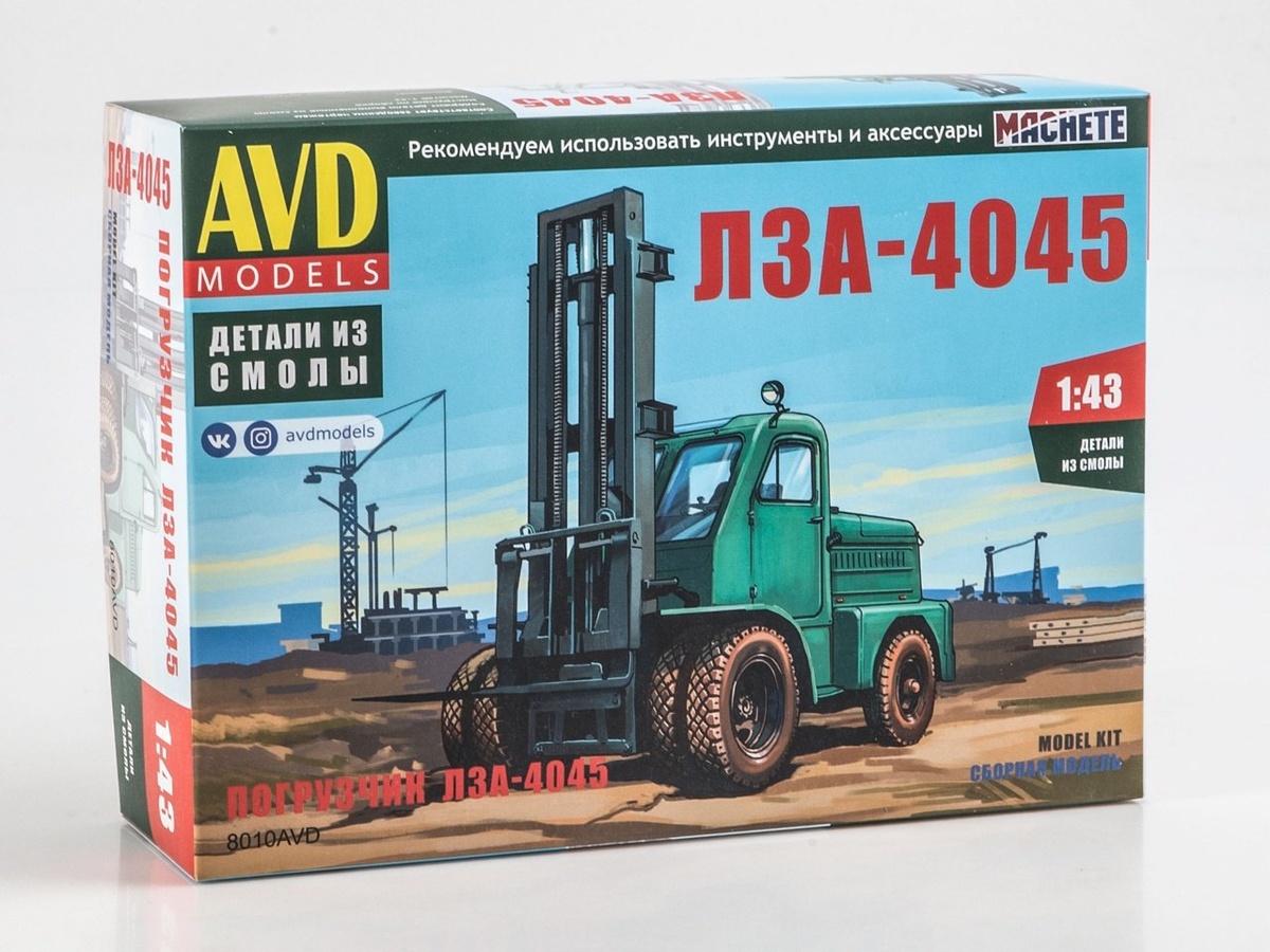 Костромская AVD Models показала состав набора своей новой модели погрузчика ЛЗА-4045 в масштабе 1/43.