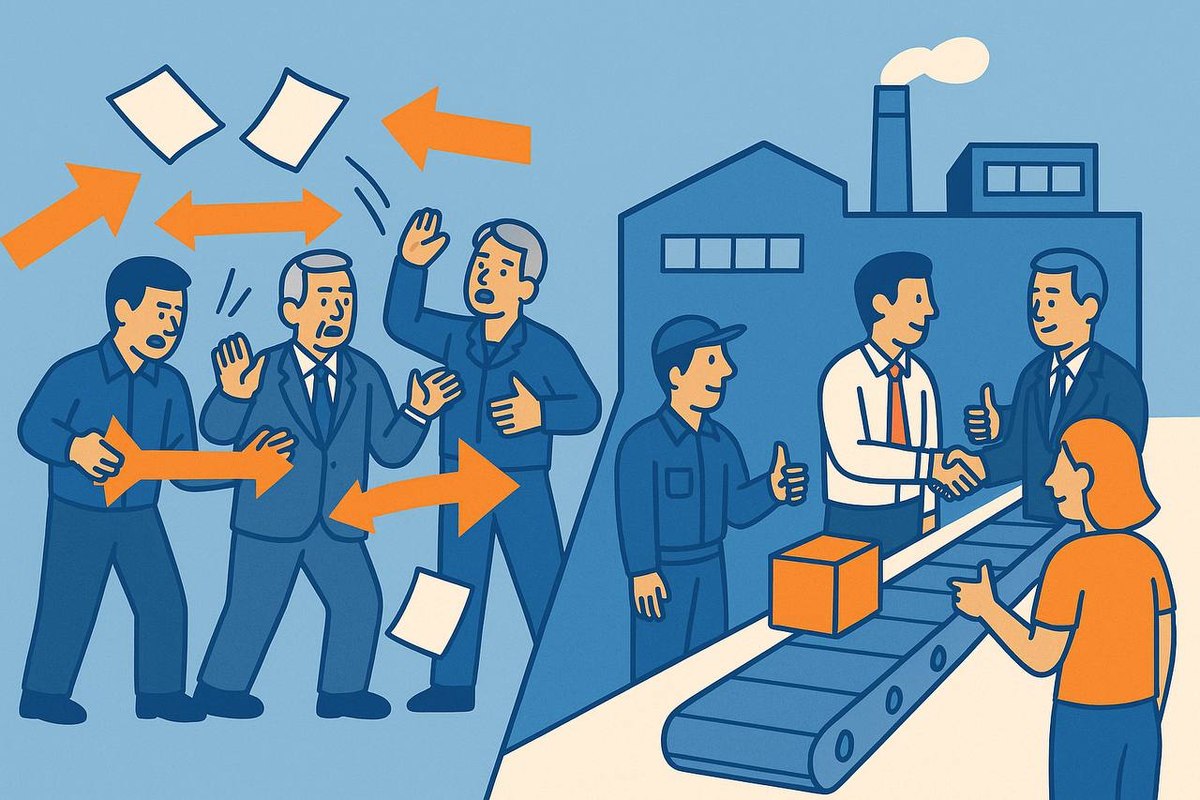 Решение: системное мышление и визуализация процессов — Value Stream Mapping (VSM), KPI-доски, петли обратной связи (Causal Loop Diagram). PwC отмечает: согласованное планирование повышает точность исполнения на 15–20 %. 2. Не