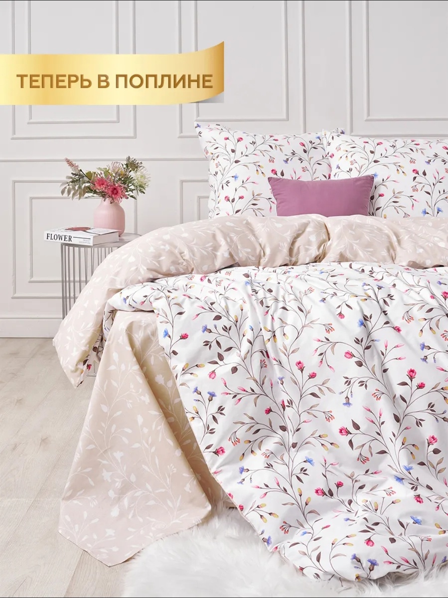 Качественный комплект постельного белья выполнен из 100% хлопка, из поплина — мягкого, дышащего и гипоаллергенного материала. Он сохраняет тепло, приятен на ощупь и создаёт ощущение заботы о себе. Милые цветочные и клеточные рисунки делают спальню уютным оазисом комфорта, где приятно отдыхать и просыпаться.