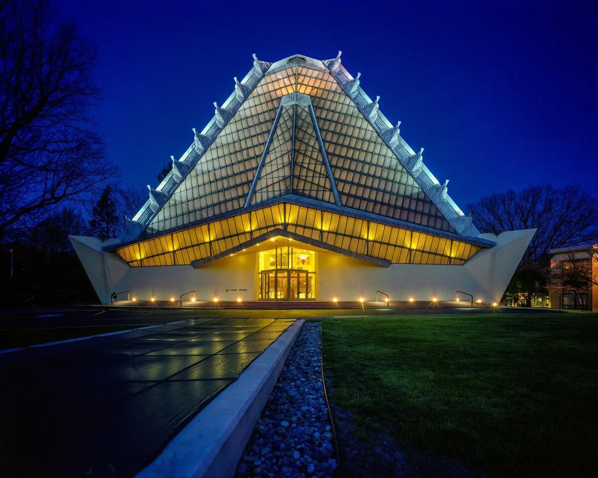 Единственная синагога Фрэнка Ллойда Райта Один из самых знаменитых архитекторов Америки построил за всю карьеру только одну синагогу. Но какую! 1950-е, Филадельфия. Молодой раввин Мортимер Коэн пишет письмо 80-летнему Фрэнку Ллойду Райту: «Создайте нам синагогу, которая будет одновременно еврейской и американской». Результат: Бет Шолом — синагога в форме горы Синай. 1500 стеклянных панелей, вмещает 1000 человек. Здание, которое заставляет смотреть вверх. Райт глубоко погрузился в еврейскую традицию: ⏩Пол спускается чашей — как будто это большая миква ⏩Ковер песочного цвета — как песок в пустыне ⏩Над ковчегом — скульптура, напоминающая горящий куст ⏩Три стальные балки — как лучи света — символизируют Авраама, Исаака и Иакова Красиво?