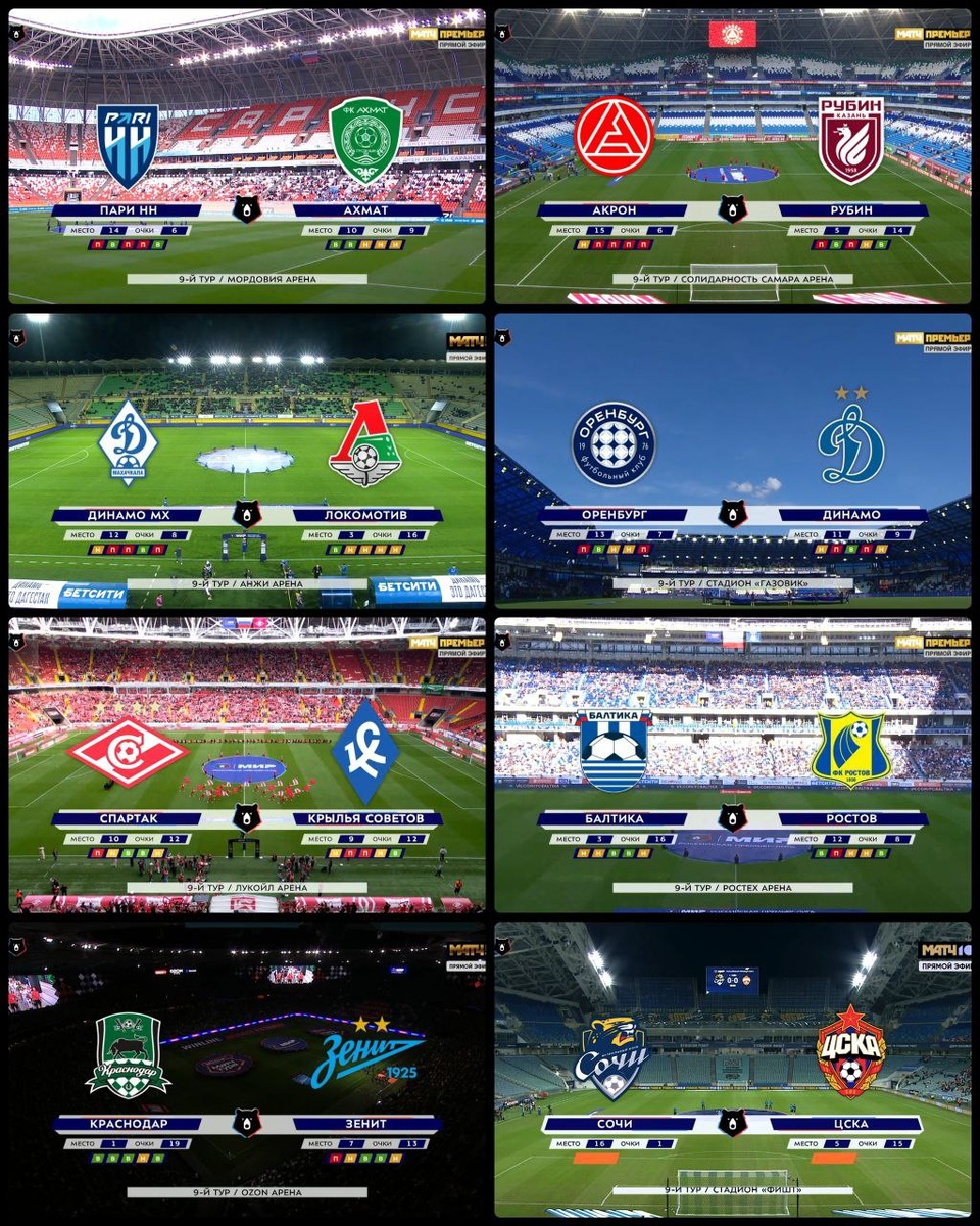 ЧТО ПО ЗРИТЕЛЯМ? тур 9 🗣 Лидер тура по посещаемости - игра "Краснодара" и "Зенита" - вошла в топ-6 сезона. Домашний матч "Спартака" собрал 20к. А вот 5 игр из 8 не смогли дотянуть даже до 10 тысяч; 🗣В 10-м туре нас ждёт "Краснодар" в Ростове, домашки "Зенита" и "Спартака", "Балтика" в гостях у ЦСКА. Но в сумме прогнозируем снижение общей цифры сезона до <14к. Посещаемость 9 тура РПЛ: 🔵🟢👥 3 053 🔴🔴👥 2 838 🔵🟢👥 4 599 🔵🔵👥 5 444 🔴🔷👥 20 180 🔵🟡👥 17 250 🟢🔵👥 34 029 🔴🟠👥 6 348 В среднем тур: 11 717 чел/матч Сезон 25/26: 14 031 чел/матч Сезон 24/25: 12 155 чел/матч Сезон 23/24: 11 162 чел/матч *ковид, введение фанайди Сезон 18/19: 16 817 чел/матч Самые посещаемые игры сезона: 01. 🔵🟠 43 757 (03.08.25) 02. 🔵🔵 36 099 (30.08.25) 03. ❤️❤️ 35 333 (20.07.25) 04. 🔴🔵 34 456 (16.08.25) 05. 🔴🔴 34 128 (23.08.25) 06. 🟢🔵 34 029 (21.09.25) 07. 🔵🔵 31 478 (23.08.25) 08. 🟢🟢 28 257 (26.07.25) 09. 🟢🔴 27 503 (13.09.25) 10. 🔵🔵 27 447 (14.09.25) 🚀@priotdal