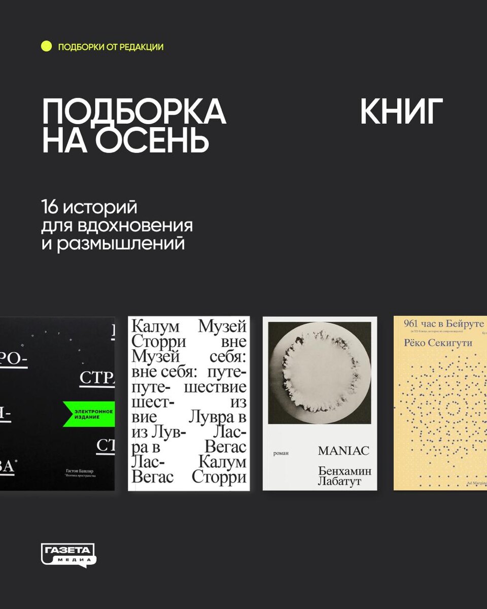 Книги для вашей осени: от интеллектуального чтения до трогательных историй Идеями для сериалов на осень мы уже запаслись, настало время пополнить список новыми книгами. Редакция «Газеты» подготовила для вас литературные рекомендации, которые помогут замедлиться в эту дождливую пору или, наоборот, заставят мозг размышлять и анализировать. Мы разделили подборку на пять блоков, чтобы каждый мог найти чтение по настроению. И самое главное: все эти книги уже ждут вас в «Библиозине» на @hlebozavod9. Заглядывайте в гости, чтобы почитать и купить понравившиеся произведения! В комментариях ждем ваши любимые книги для осеннего сезона! #газета_библиозин #газета_образ_жизни